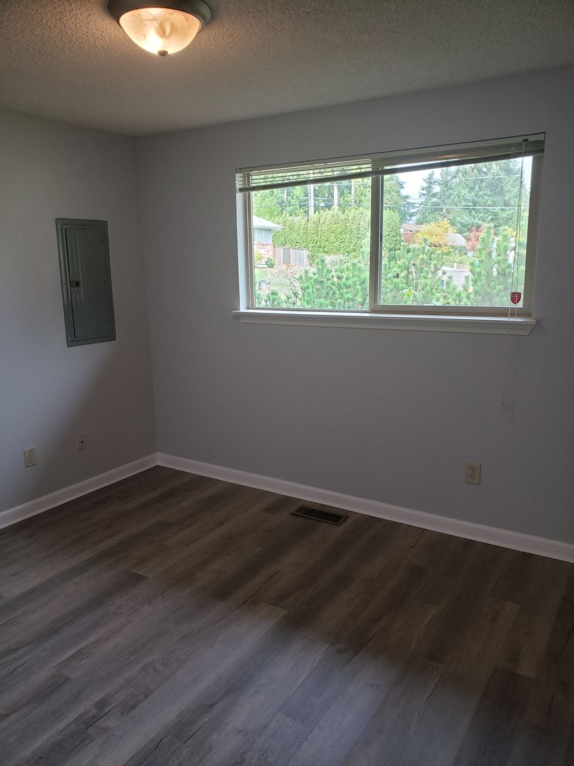 Has all the space you need. 3 bedrooms, 1.5 bathrooms. Park like back yard. Single car garage. *Not a fenced backyard*. Entire interior just painted. New LVP flooring throughout, no carpet. Conveniently near to South Hill retail core. Available now. NO CATS. Single dog considered. Minimum gross income = 3x Rent amount. Minimum credit score = 685.